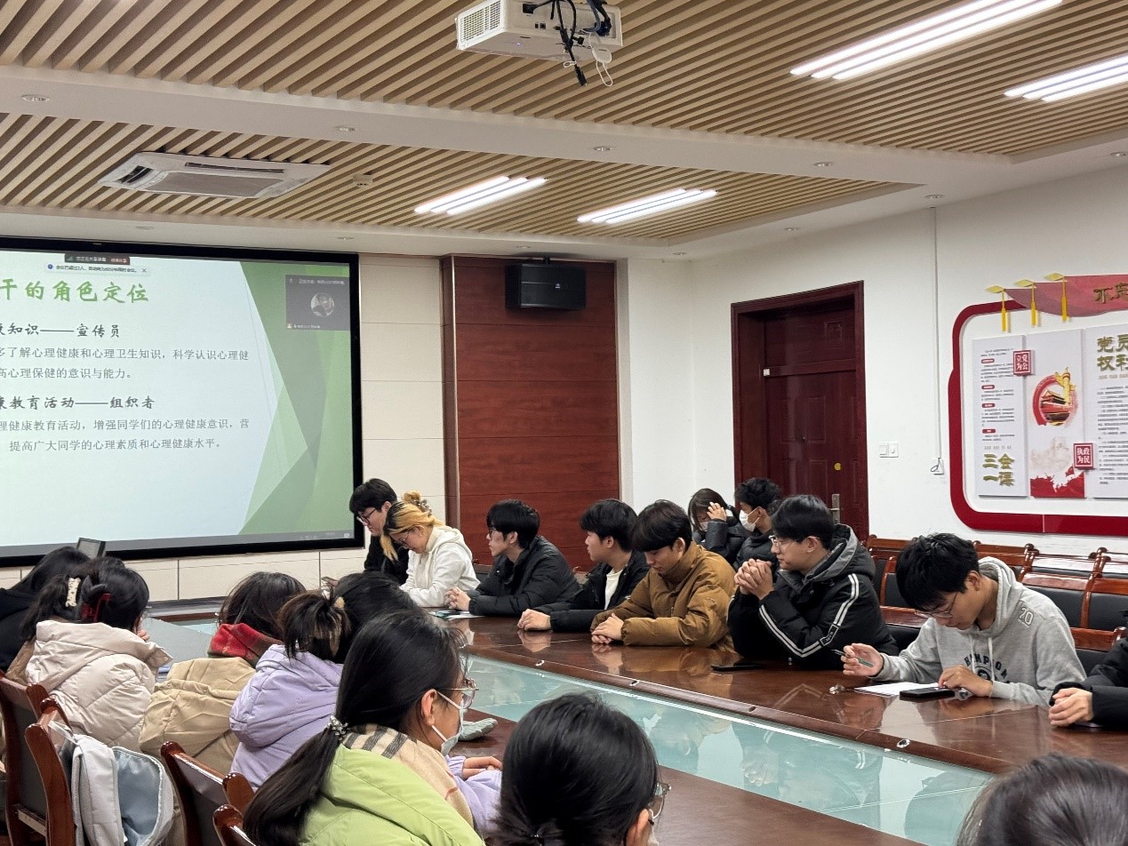为提升心理委员专业素养,增强其对心理健康问题的认知与应对能力,12月3日,我院于化学楼207会议室召开心理委员培训会。会议由我院权益部副部长郑林楠主持,2021级、2022级、2023级及2024级全体心理委员参会。