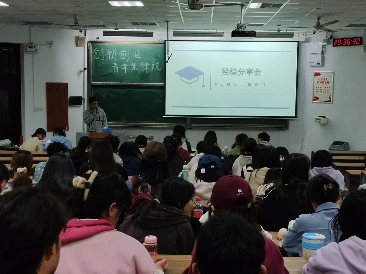 为激发创新动能,释放创业潜力,鼓励同学们积极参与创新创业活动之中,bat365中文官网登录入口于4月17日在教学楼B101开展了以“青年锐气创新业,先锋精神引领时”为主题的讲座,以此来指导学生们进行科技创新和产业创新事业。本次讲座的主讲人是制药工程2001班优秀双创代表朱康伟,2022级制药工程专业全体学生参加。