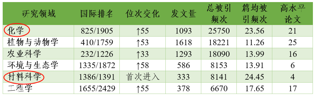 2020年5月和2024年4月,我院化学专业、材料科学两个专业相继进入ESI全球前1%,在全校六个进入ESI全球前1%的专业中占1/3。
