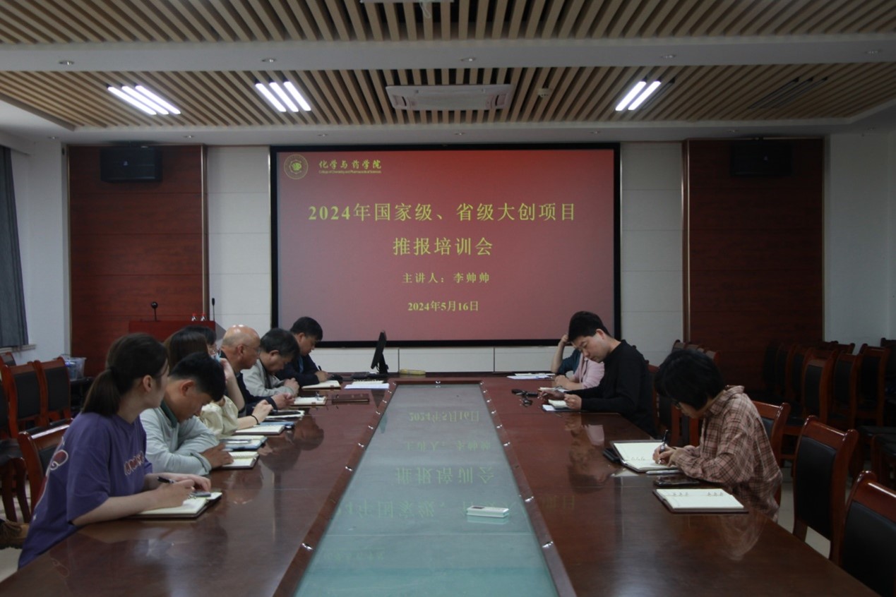 为提升2024年度国家级省级大学生创新创业训练计划项目质量,提高国家级、省级大创项目立项数量。5月16日,bat365中文官网登录入口于化学楼207举行2024年国家级、省级大创项目推报指导教师培训会。本次大会由院长龚良玉主持,院长助理李帅帅主讲,2024年大创指导教师参加。